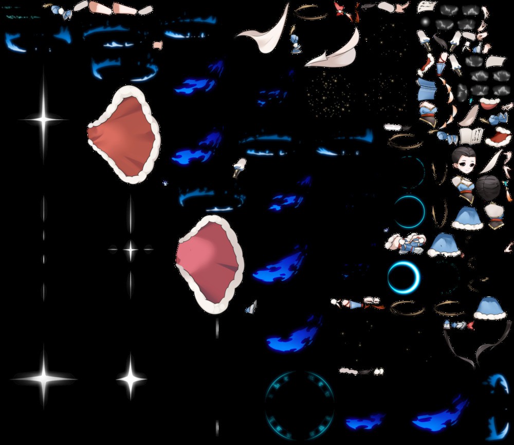 以下为缩小后的全局预览图片此套素材含有96张图片,2个atlas文件,1个json文件,1个spine文件,压缩包大小为10.2 MB...