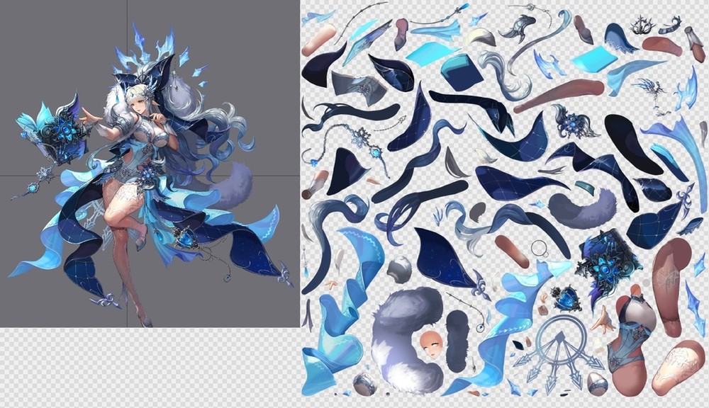 此套素材含有3张图片,1个atlas文件,1个skel文件,压缩包大小为4 MB
